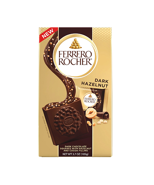 Ferrero Rocher Dark Chocolate Squares combine the signature Ferrero Rocher hazelnut and rich dark chocolate coating. Luxuriously smooth and perfectly crunchy, they are an indulgent treat for chocolate lovers.